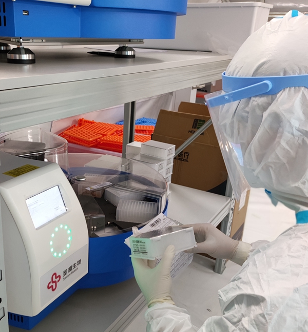 自福建疫情发生以来,圣湘生物紧急响应,迅速组建百余人抗疫支援队伍,前往福建莆田、厦门、漳州、福州、泉州等多地抗疫,多个移动方舱实验室、数百万人份新冠核酸检测试剂、数百台仪器及配套物资送达福建抗疫一线。