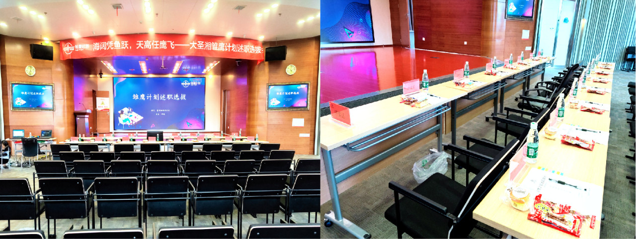 为了迎接每一位雏鹰的到来,会场早就布置得整整齐齐,摆桌椅拉横幅、放置评委资料、准备精美茶歇等,为活动提供秩序保障和个性化服务。